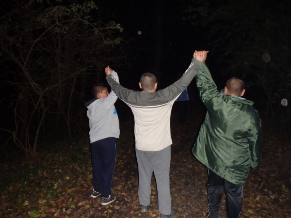Po loňském netradičním ročníku v Olomouci byla letošní stezka odvahy také jiná, vhodnější pro menší děti. V plánu bylo projít setmělým lesem bez světla a ve skupině. Chlapci měli příležitost vnímat les a krajinu za tmy, rozlišovat obrysy v okolí a naučit lépe ovládat nepříjemné pocity. Tato aktivita podpořila sounáležitost skupiny v zátěžové situaci. Pro většinu z nich to bylo poprvé, kdy byli večer za tmy v lese. Většina chlapců se bála a vzájemně se podporovali a drželi se za ruce. Prošli jsme Veselíčské lesy ve zdraví, chlapci se snažili naslouchat zvukům nočního lesa a zase jsou o kousek větší chlapi.
